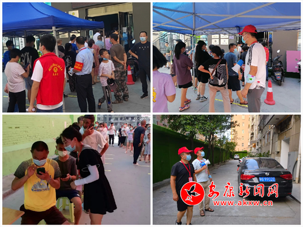 8月16日16时,太阳火辣辣地直射地面,安康市区街道酷热难耐。在北门社区面粉厂家属院第一轮核酸检测采样现场,安康市公路局下沉的5名志愿服务队员各司其职、各尽其责,助力核酸检测高效有序完成。