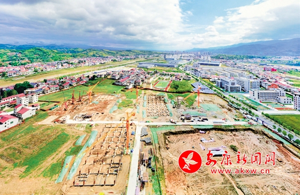 西北纺织服装产业城D区(左侧)正在加紧建设。 刘攀 摄