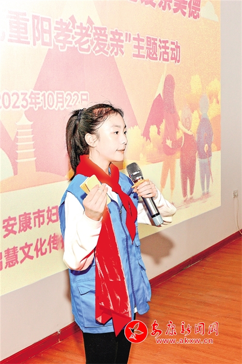 为弘扬中华民族传统美德,营造尊老、爱老浓厚氛围,在10月22日重阳节即将来临之际,安康日报社开展九九重阳 孝老爱亲主题活动。本次活动由安康市关心下一代工作委员会、安康市妇女联合会、安康日报社主办,安康少年新闻学院、安康金州启慧文化传播有限公司承办。活动中的手势舞表演《中华孝道》、互动游戏《拍拍操》、分享重阳糕、茶艺表演及为老人奉茶等环节,让现场每个人感受到了浓浓的节日氛围。