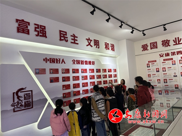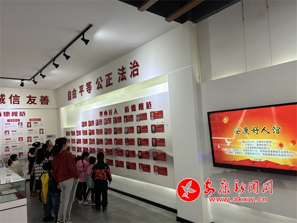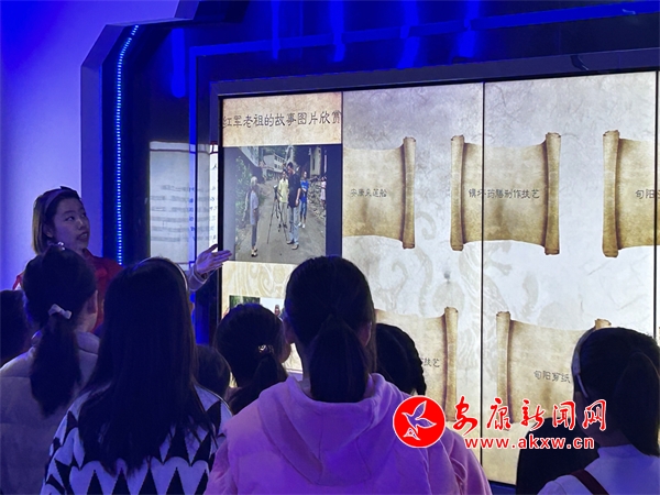 志愿者利用非遗互动墙组织孩子们学习《红军老祖》的故事,通过文字、图片以及志愿者的讲解让孩子们直观了解英雄事迹,了解到红军老祖这种尊称背后,寄托着人民群众对红军真诚、淳朴、久远的热爱和怀念。随后,志愿者带孩子们参观安康好人馆,安康好人馆分成前言板块、全国道德模范及中国好人板块、陕西道德模范及陕西好人板块、安康道德模范板块,培养和树立孩子们诚实守信助人为乐孝老爱亲敬业奉献见义勇为的文明意识。最后,志愿者将孩子们带到书画展厅,通过参观、讲解的方式,让孩子们感受传统文化的艺术魅力,希望孩子们学习艺术作品的构图、色彩搭配、线条等艺术手法并运用到自己的学习当中。
