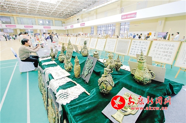 校园科技艺术展上展品琳琅满目。