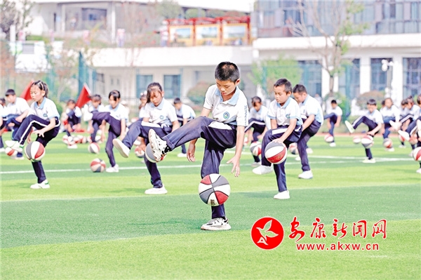 安康高新区第三小学的花式篮球展示。