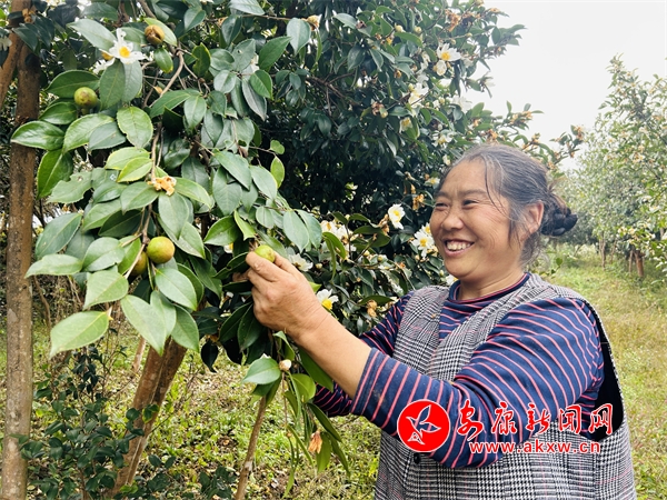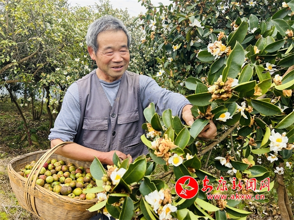 今年在这个园子里从正月份干到现在,大概有30000多块钱工资。这两天在茶园里捡茶果150元一天,再过几天园子里还割草,活还很多,活还好做、轻松。村民余祖录朴爽朗的笑声和自豪的夸赞声给这个静谧的村子孕育了无限生机。阳光仍盛,他手中的活儿还未停歇,天高云淡风轻,抬眼可望的胜雪油茶花勾勒出了一幅美好的山乡丰景图。