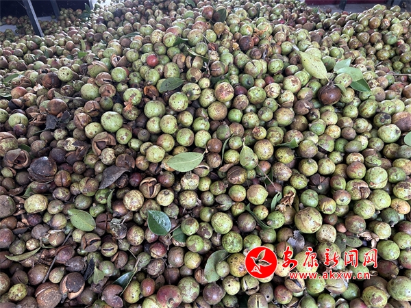 我们永胜农业现在油茶园有1600亩,今年果子还比较丰收,上半年管护比较好,油茶果湿果今年达到70万到80万斤果子,预计油的话我们今年可能榨到10000斤到12000斤茶油。程言勇说。